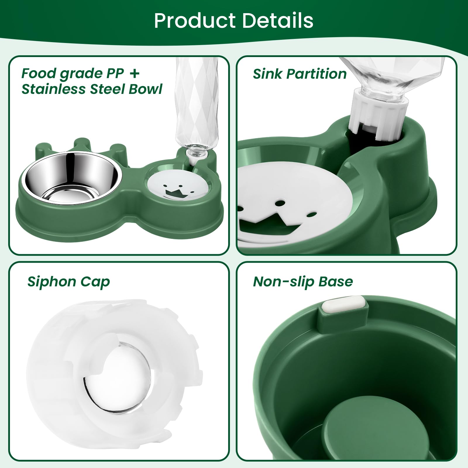 - AUTOMATIC WATER SUPPLY: The dog bowl uses the siphon principle to automatically supply water, which can stably control the water level, and a large 17-ounce water bottle. Whether you are at home or not, your pet can drink fresh water every day (changing water every day can help your pet drink more healthily)