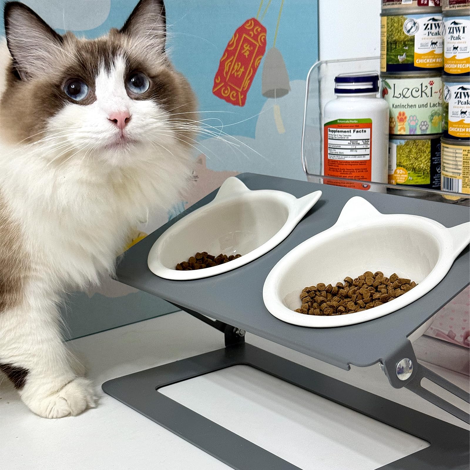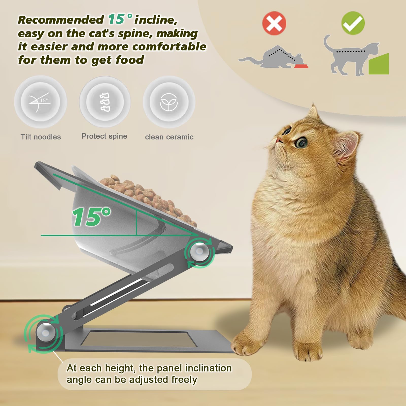 - 【MULTIPLE ANGLES CAN BE ADJUSTED】Recommended 15 ° tilt can better reduce neck and back strain on pets. Providing a comfortable feeding posture for cats is more in line with their dietary habits.